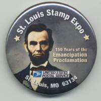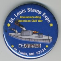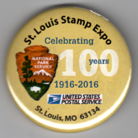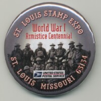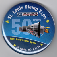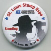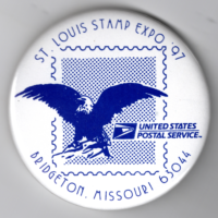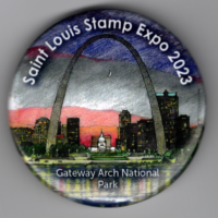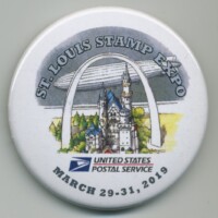 The USPS logo was on all buttons as they had been paying the cost of the buttons under their advertising budget but that ended in 2019. The buttons were designed by a mail carrier named Scottie. while we don’t know Scottie’s last name, he was a key contributor who deserves note in the history of Expo. Scottie was a mail carrier out of one of the post offices in north St. Louis. The USPS found that he had some artistic talent and gave him an unofficial job of designing special postal cancels for events and shows in St. Louis, like Expo. Scottie would take Tom Minor’s cachet design, develop the USPS cancel and show buttons, then have them created. Scottie was said to have used only MS Word in his design of the cancels, which anyone who has used MS Word would know could not have been easy. Scottie created all the cancels for the show until 2010, when he retired from the USPS. Thanks for your contributions to the show, Scottie!